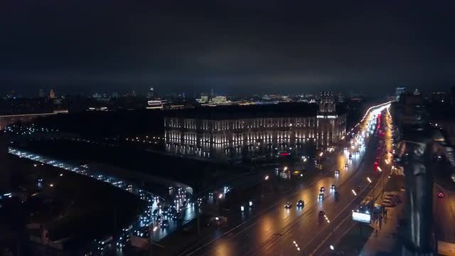 531238 - Triumphal arch at night in Moscow, Russia, timelapse