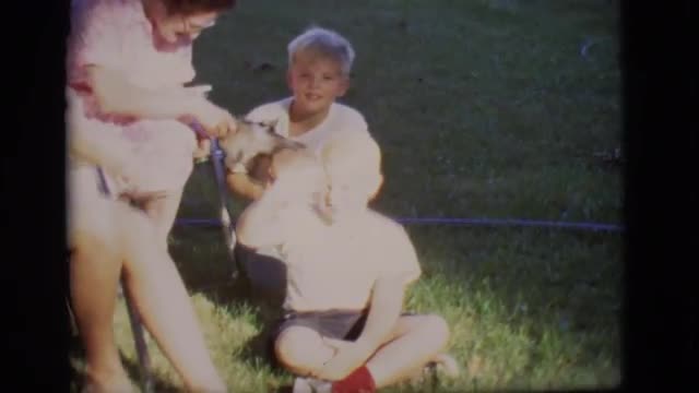 1968: timeout with the kids having fun with the pet because daddy and grandfather went out CLARKSDAL