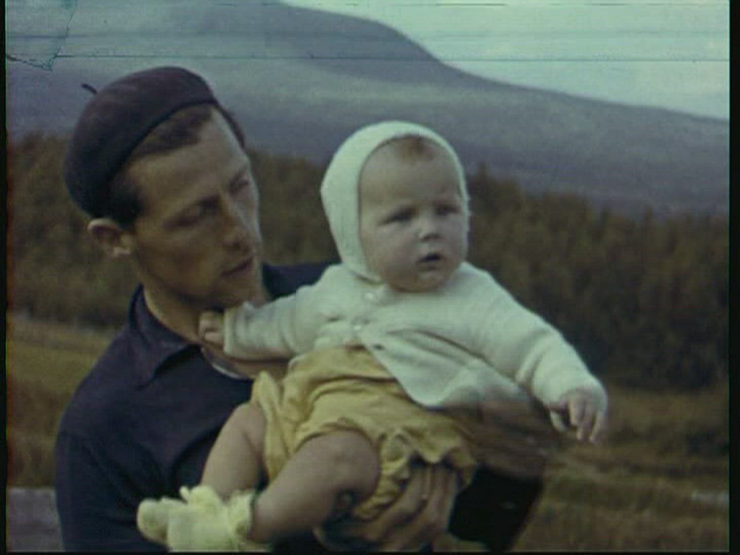 > 1972: man with a beautiful baby in his hand before a camera LYNBROOK, NEW YORK