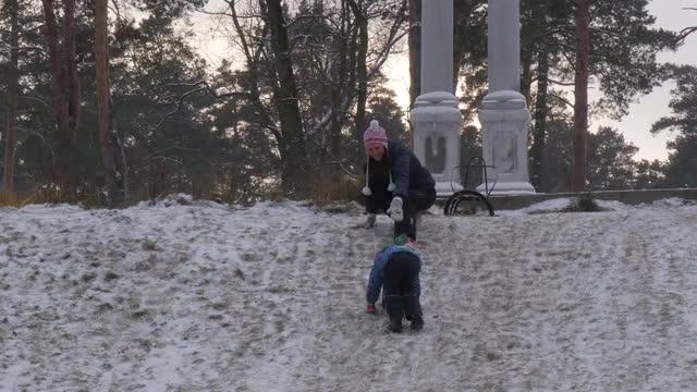 1958: a man helps a young boy slide down a slide. TUCSON, ARIZONA