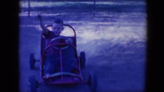 > 1958: kid driving a red car through playground TUCSON, ARIZONA