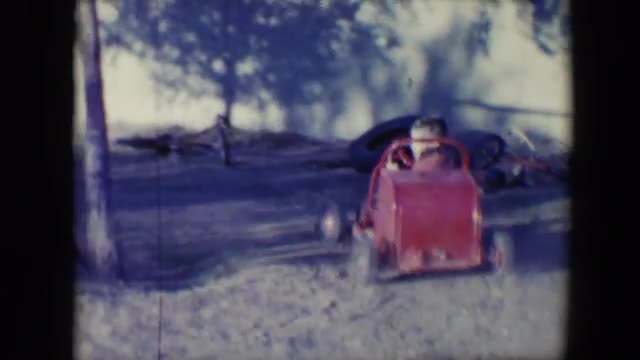 > 1958: childrens are playing in a playground and rides a car TUCSON, ARIZONA