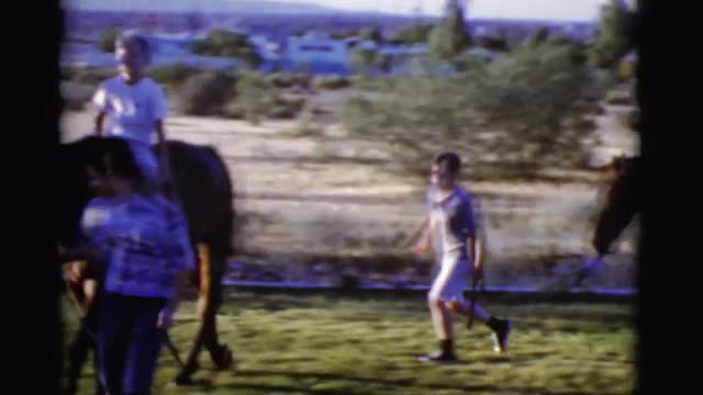 > 1968: the childrens are playing with the horses in the field COTTONWOOD, ARIZONA