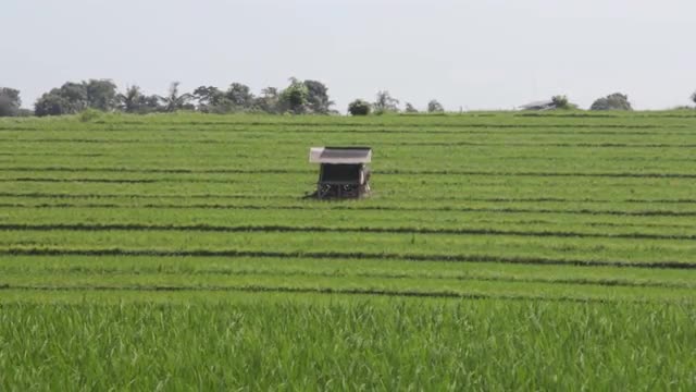 Green Rice Sprouts in the Dew, Rice Sprouts Fluttering in the Wind, Rice Sprouts in the Glare of the Sun, Sunny Weather, Out of Focus