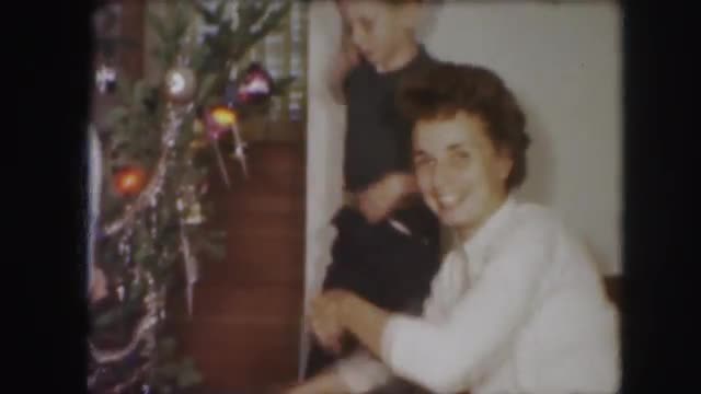 > 1967: mother and children are decorating x-mas tree with presents NEVADA