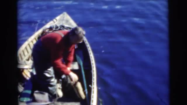 > 1956: three men in the water on a small motor boat fishing over the side CAMDEN, NEW JERSEY
