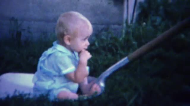1954: mother and father playing around and being silly with child around their home, with mom showin