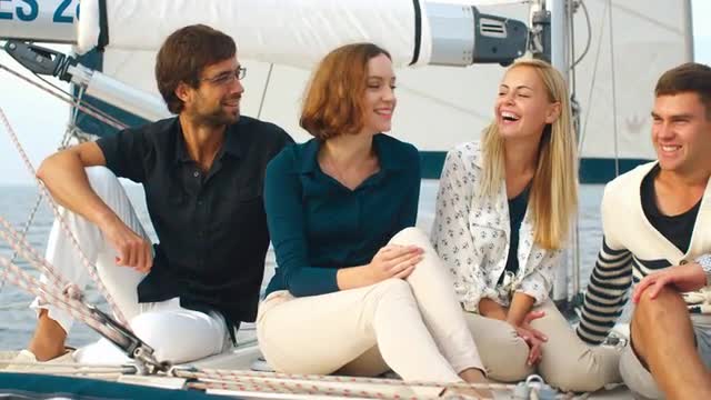 > 1967: people talking and relaxing outdoors in lounge chairs lady walks away smiling and waving helps