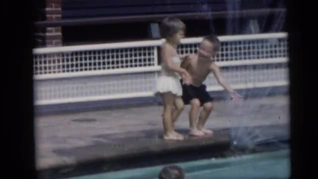 > 1967: children playing in the water of pool by swimming and running PENNINGTON, NEW JERSEY