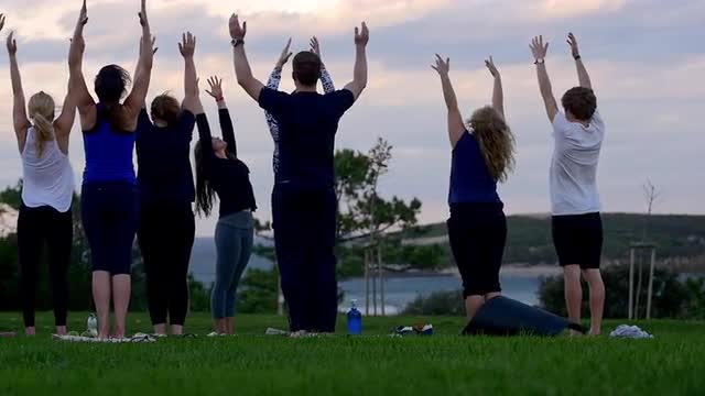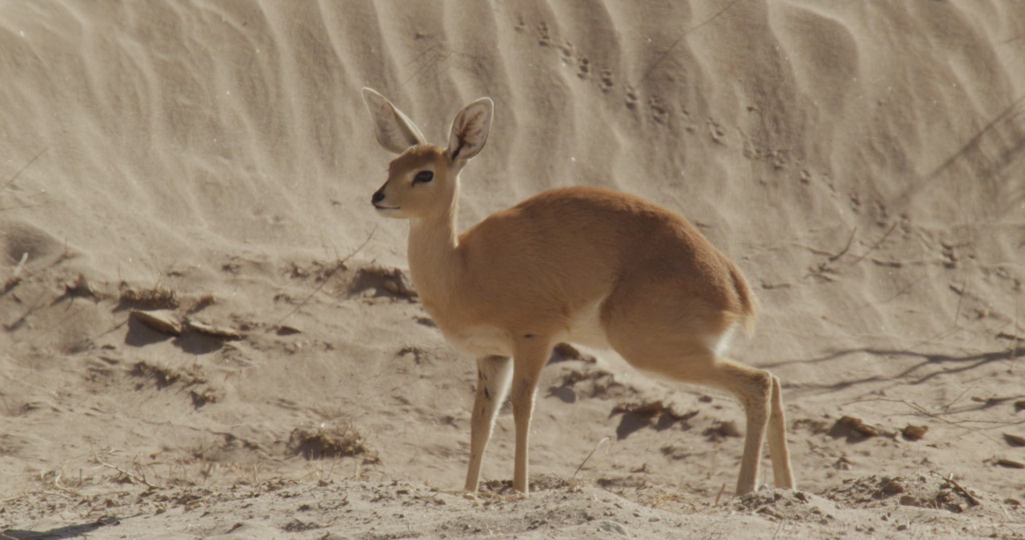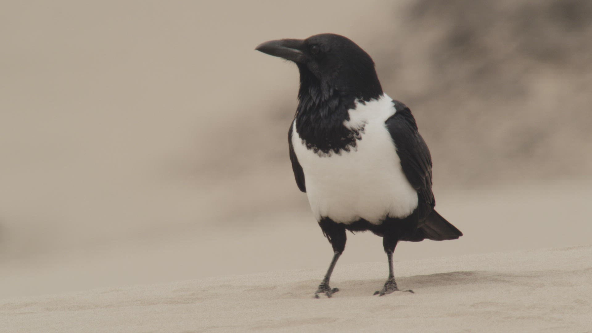 WS SLO MO Woman standing on sand dune with arms outstretched / Maspalomas, Gran Canaria, Spain