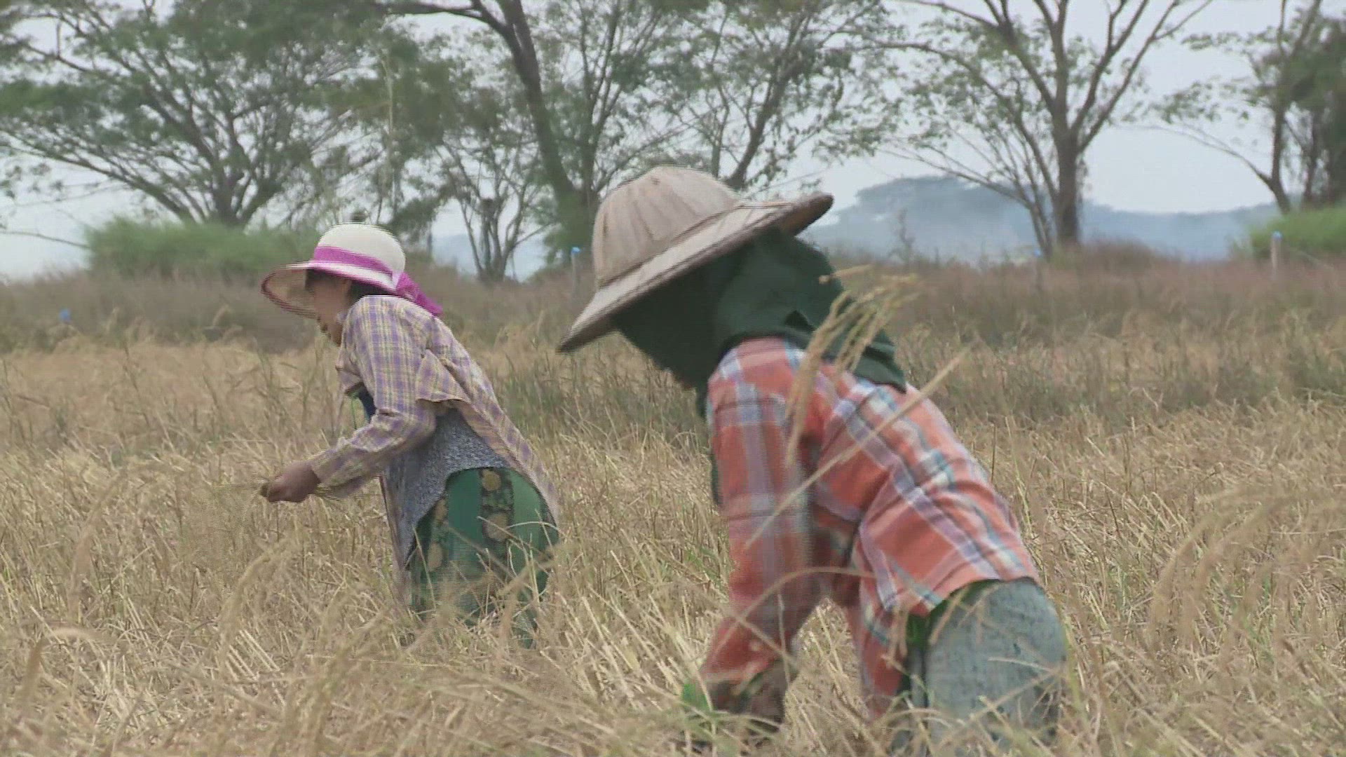 Bali/indonesia - Sep 14 2016: People Collect Rice in the Rice Fields, Near the Palm Trees and Houses, Rice Field Surrounded by Palm Trees and Houses, Sunny Weather, Rice Field and Palm Trees, House Stands on a Rice Field
