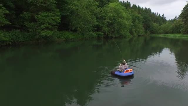 > 1951: two men lake fishing pulling their large catch into their boat. CANADA