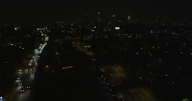 207828 - Downtown LA Night Cityscape Time Lapse -Busy Parking Lot