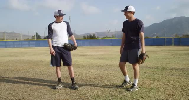 630594 - WS Baseball players talking in baseball diamond