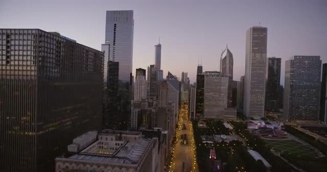 > WS POV Road and skyscrapers in city