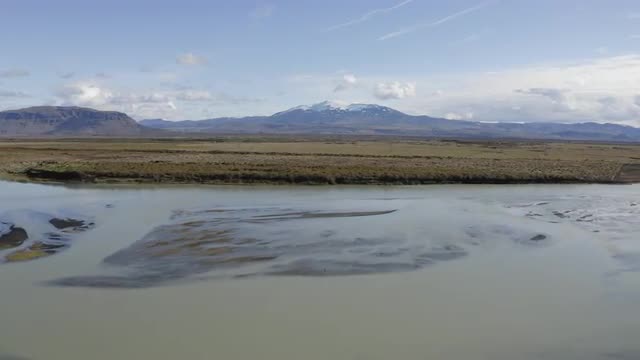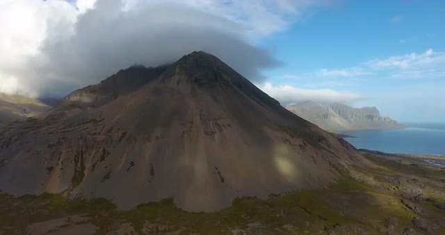 tracking shot of icelandic mountain on beautifulk sunny day