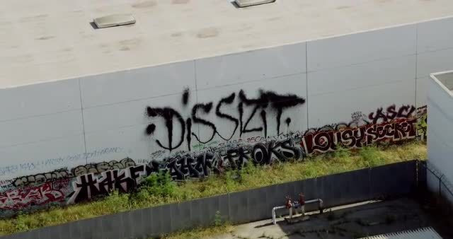 > MS ZO AERIAL View of graffiti on wall