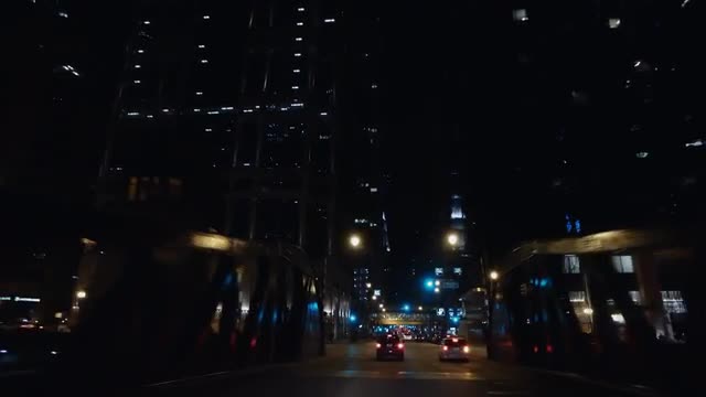 1245118 - Night Timelapse over Downtown Chicago Theater Sign turning off with street traffic and cars