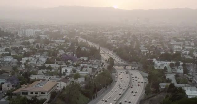 WS AERIAL View of cityscape with traffic