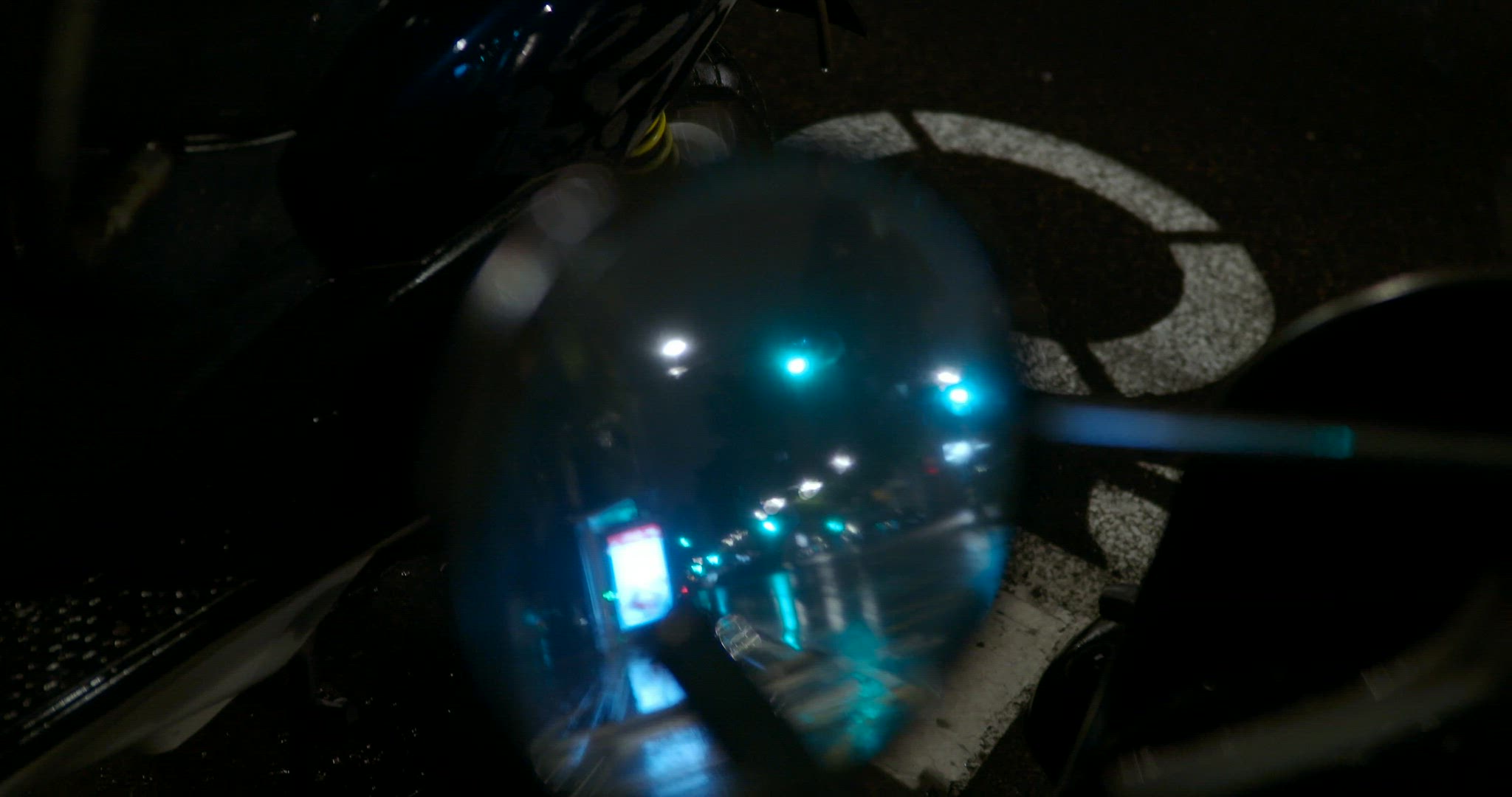 > WS AERIAL View of suburban housing and car parking at night