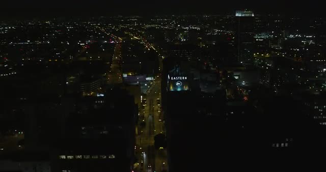 > WS AERIAL View of cityscape at night