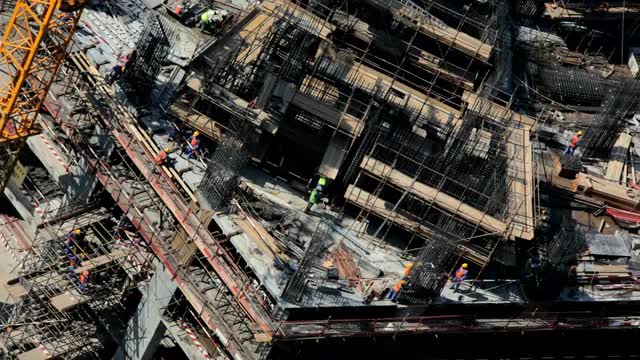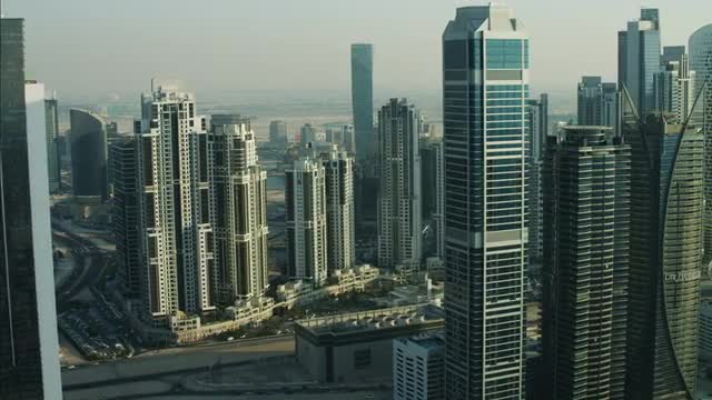 WS POV AERIAL View of cityscape and The Ritz Carlton hotel / Los Angeles, United States