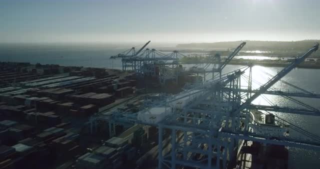 WS POV AERIAL View of shipping industry / Los Angeles, United States