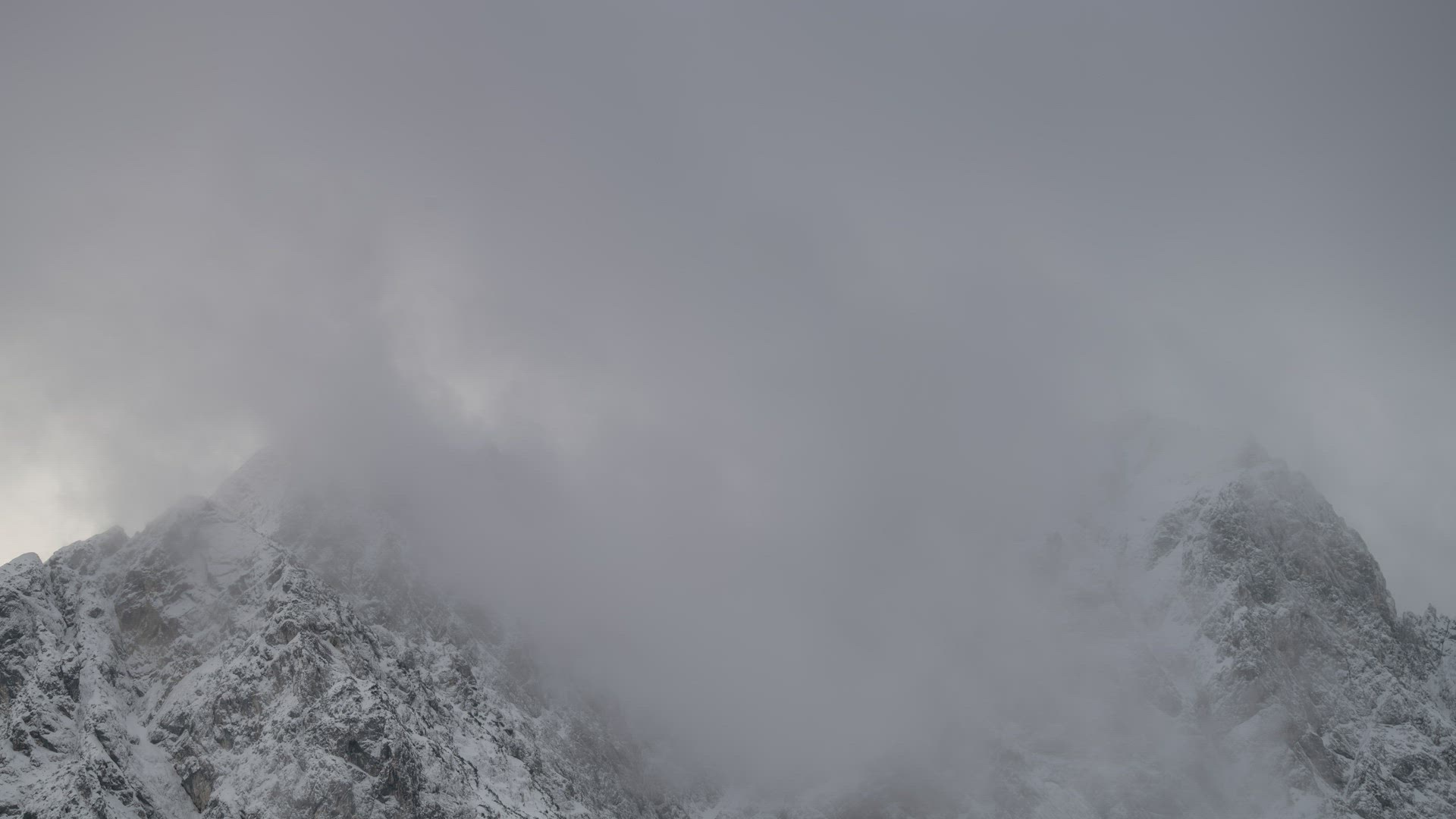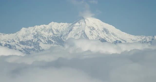WS POV View of snowcapped rock mountains with clouds / Nepal