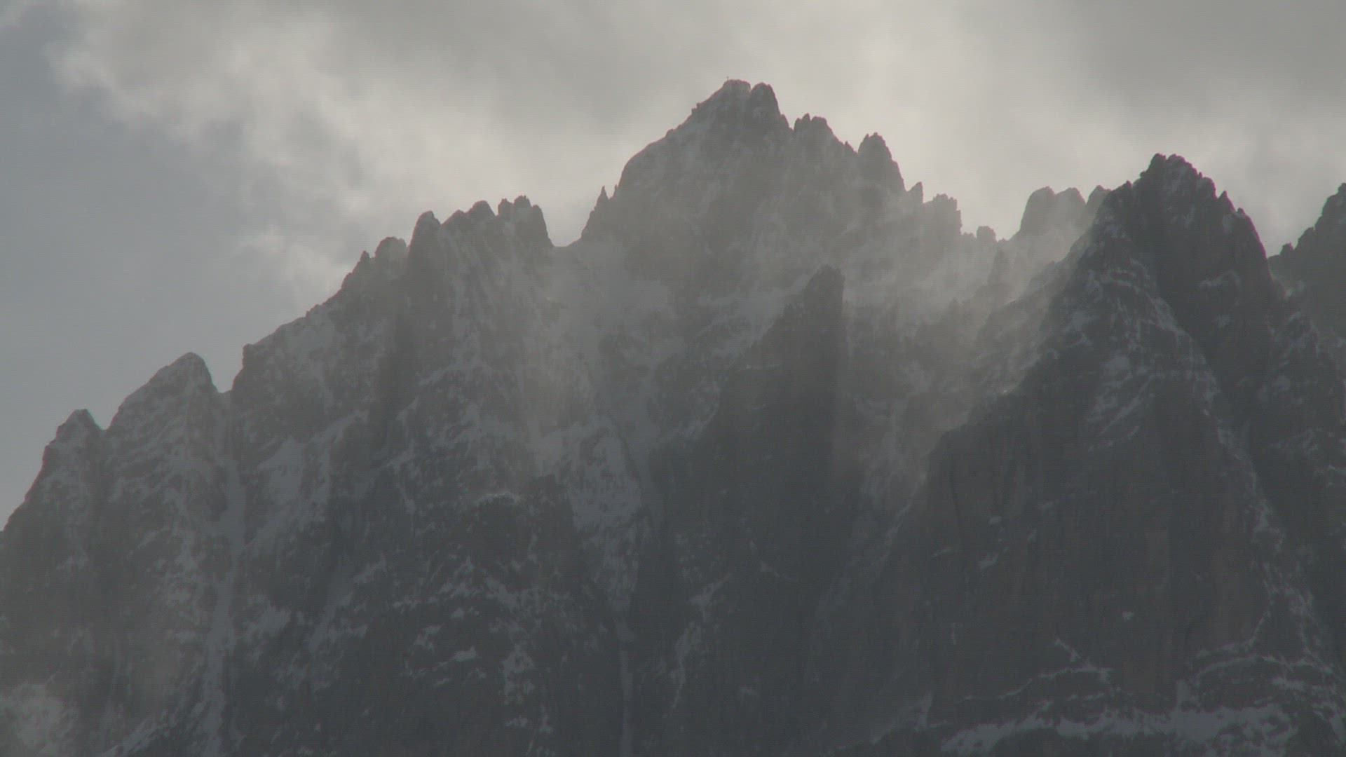 > Snowcapped rock mountains