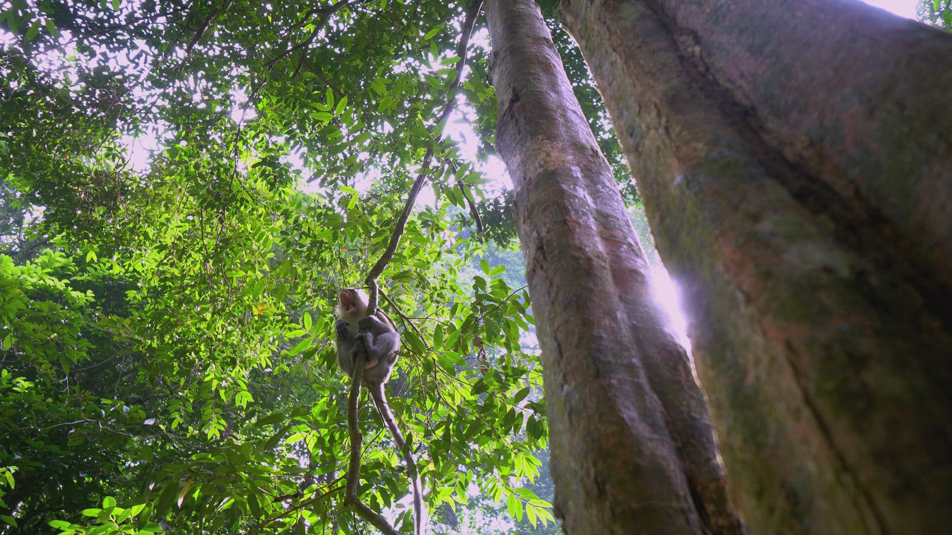 695367 - Tracking up the trunk of a rainforest tree festooned with aerial roots in the rainforest