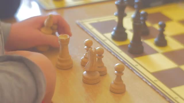 Chess Tournament Group of Children Play Chess Kids Sit Across From One Another and Making Moves Turn