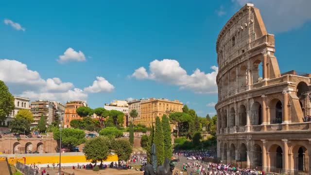Motion timelapse of people crowd near famous Colosseum amphitheater in Rome, Italy. April, 2016.