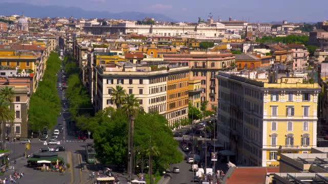 Timelapse of the car traffic near Venice squre (Piazza Venezia) and Capitoline Hill. Rome, Italy.