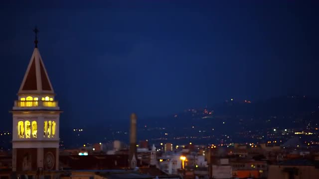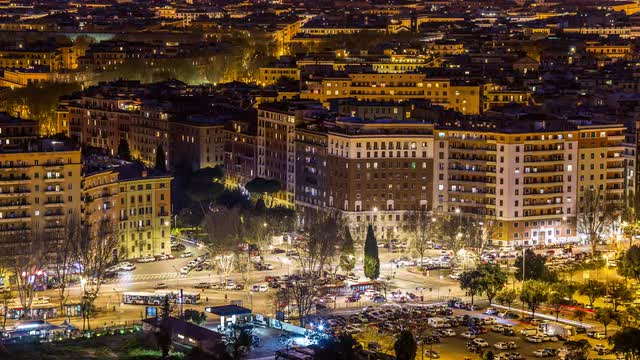 Timelapse of clouds over the roman roofs and Vatican Saint Peter's basilica Dome. Rome, Italy.