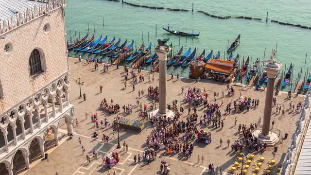 Wide angle Timelapse (time-lapse, time lapse) of clouds over the roman roofs and Vatican Saint Peter's basilica Dome. Rome, Italy. April, 2016.