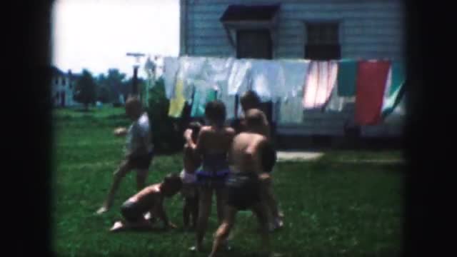 1958: children playing a game out in the yard in the summer time AMES, IOWA