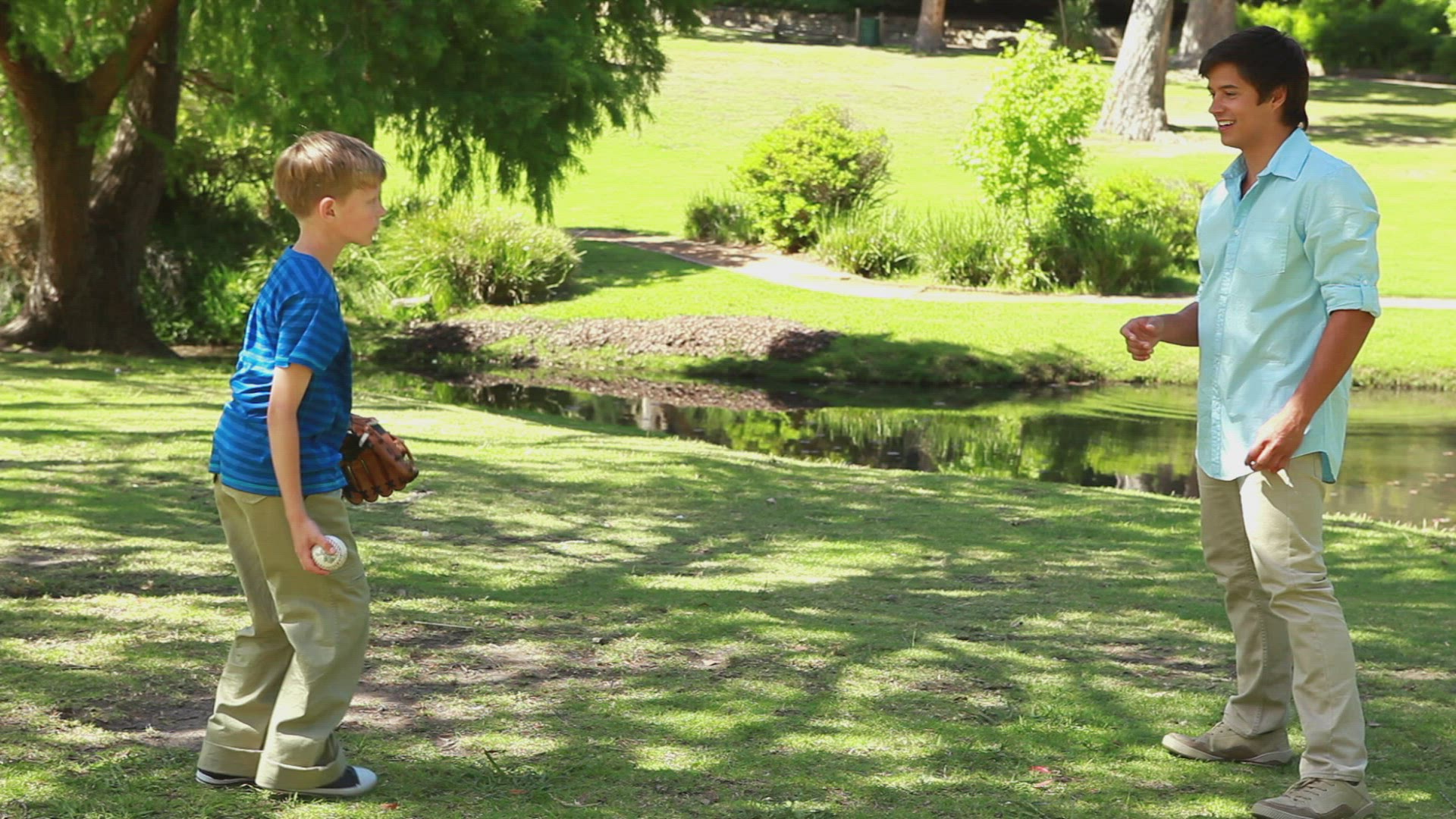 > 1958: boy pitching ball in green grass near parking lot AMES, IOWA