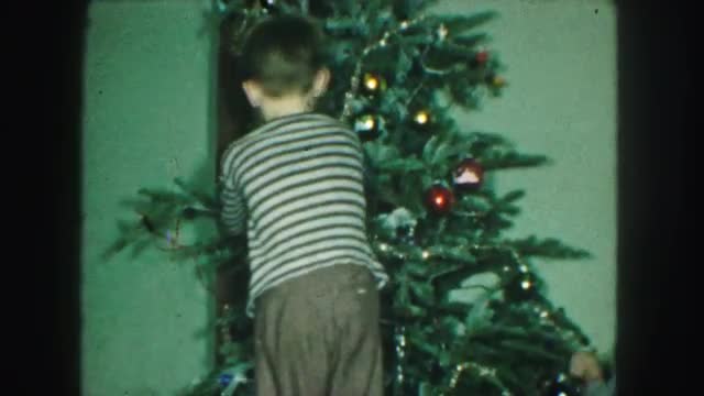 > 1958: brother and sister decorating the family christmas tree AMES, IOWA