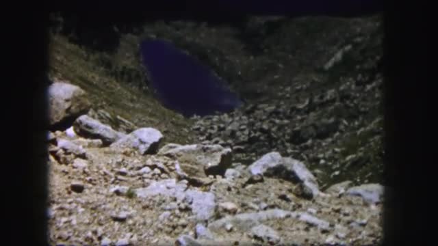 1958: a blue lake like a gem in the heart of a hill with rocks scattered COLORADO