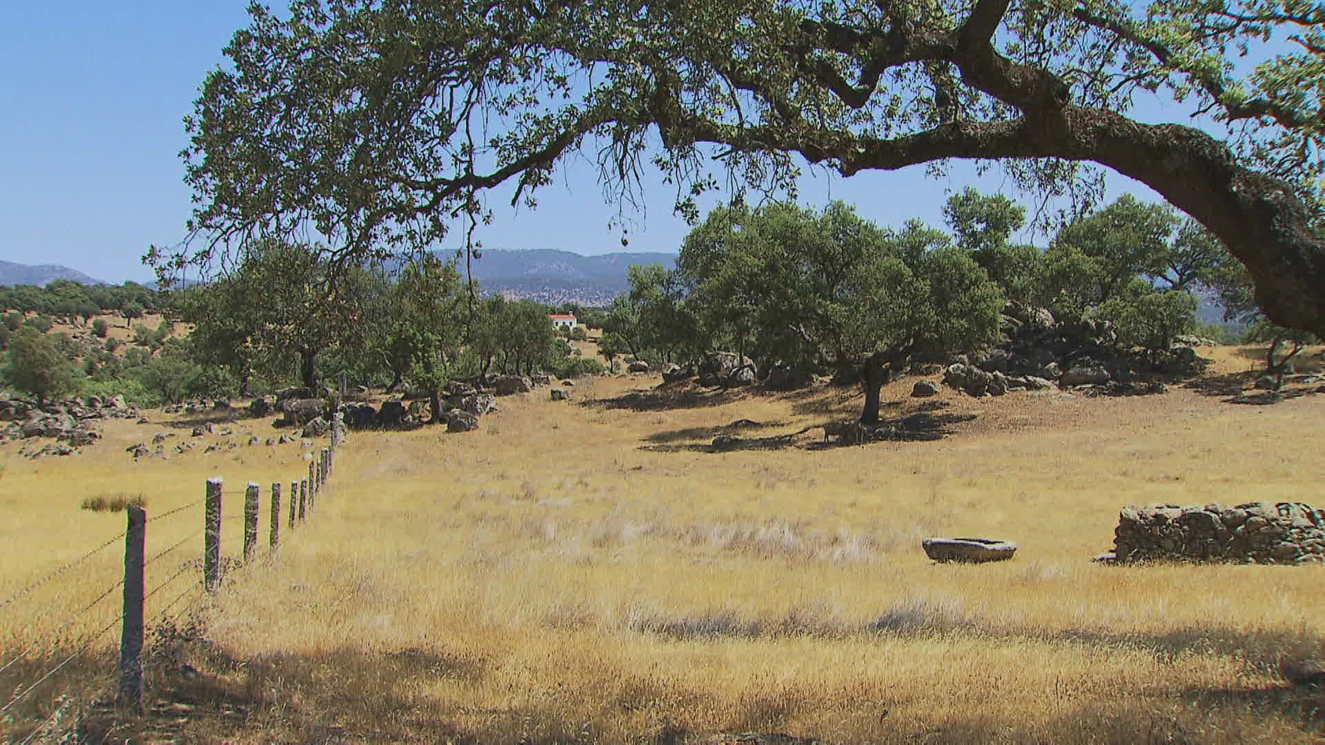 > 1957: dry wild mountain range with trees and man made fences describing a lonely area LAS VEGAS, CAL