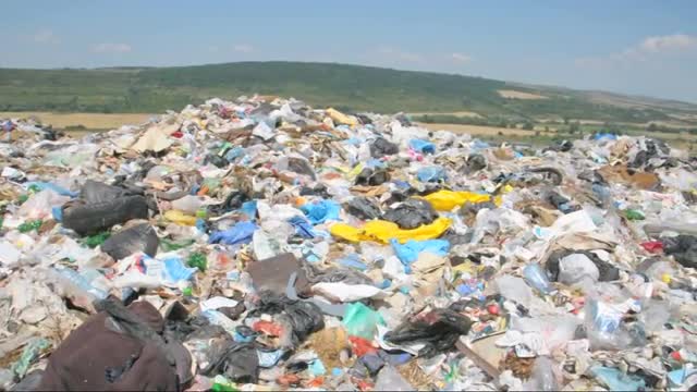 2157471 - Aerial view look down smoke due to fire in landfill blown by wind