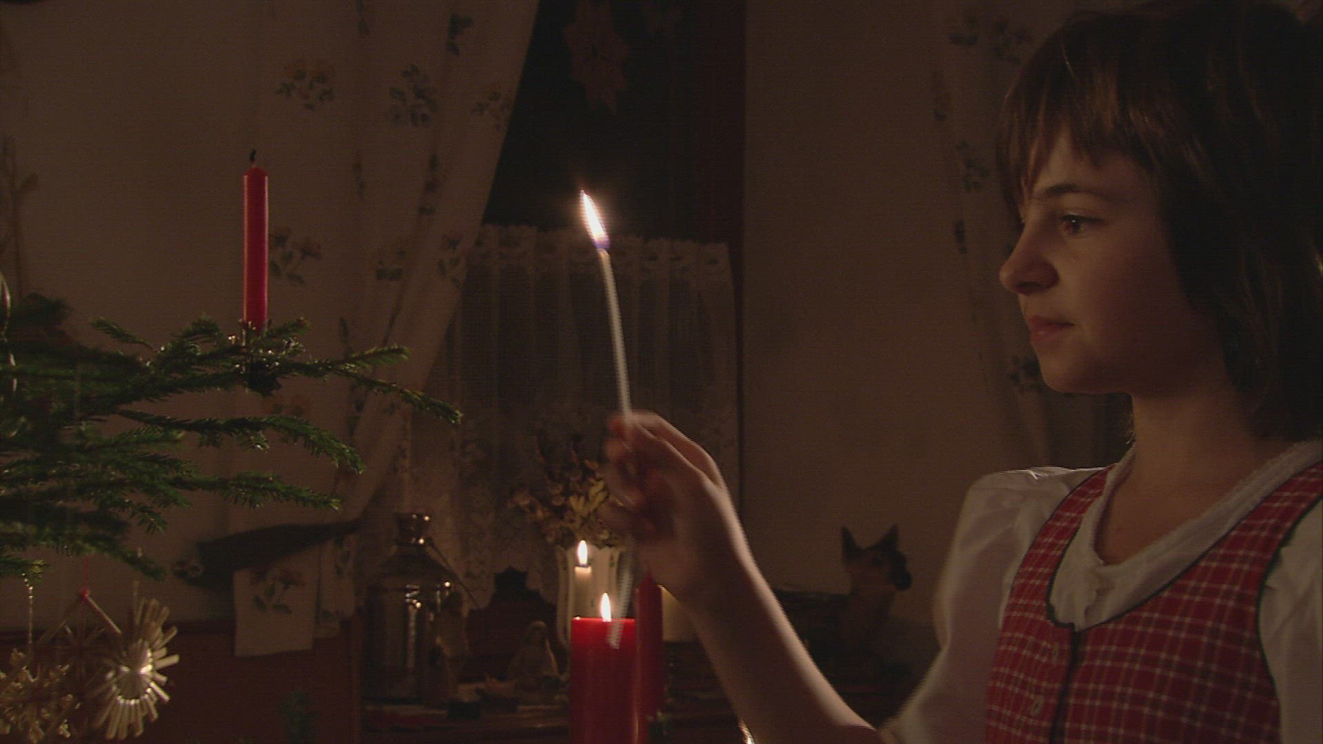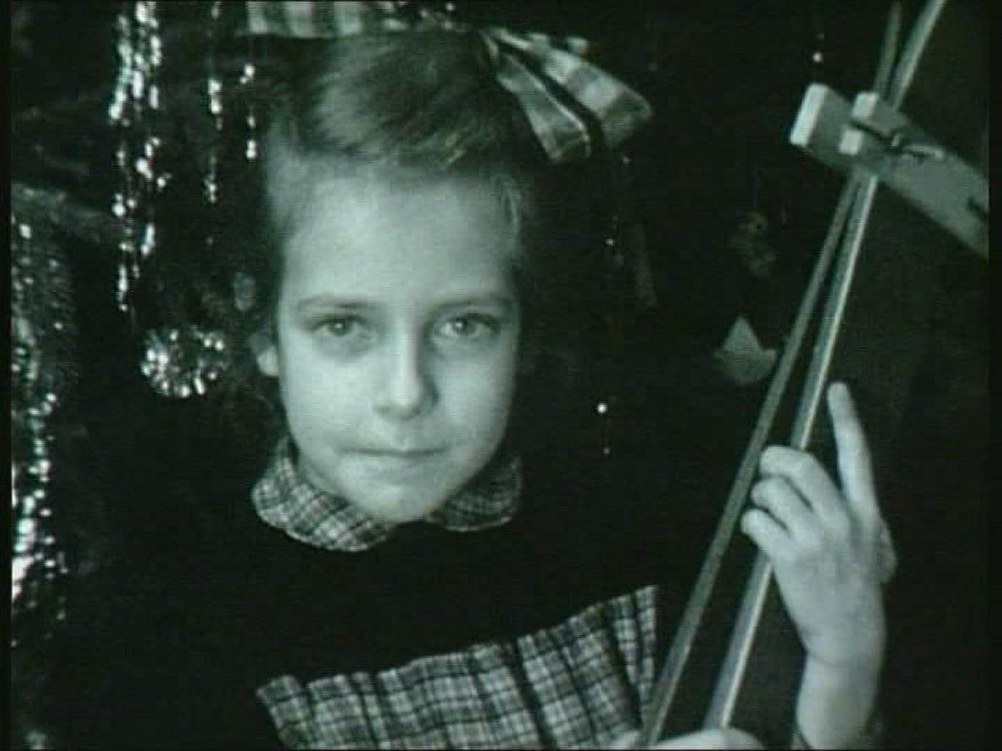 > Delivery Package to Young Girl Portrait Smile Open Box Online Shopping on Christmas Tree Bokeh Xmas