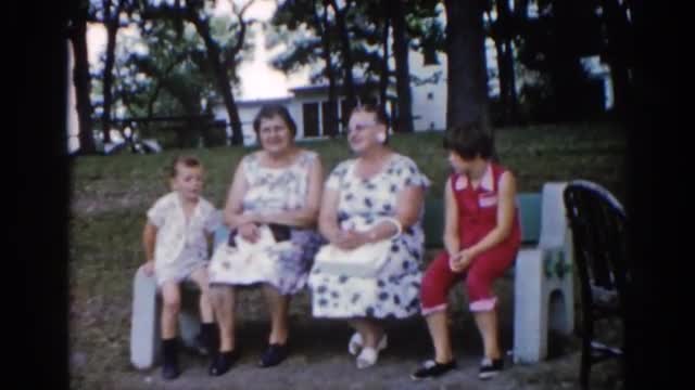 1962: old women and children sitting at rural bus stop CHICAGOLAND AREA