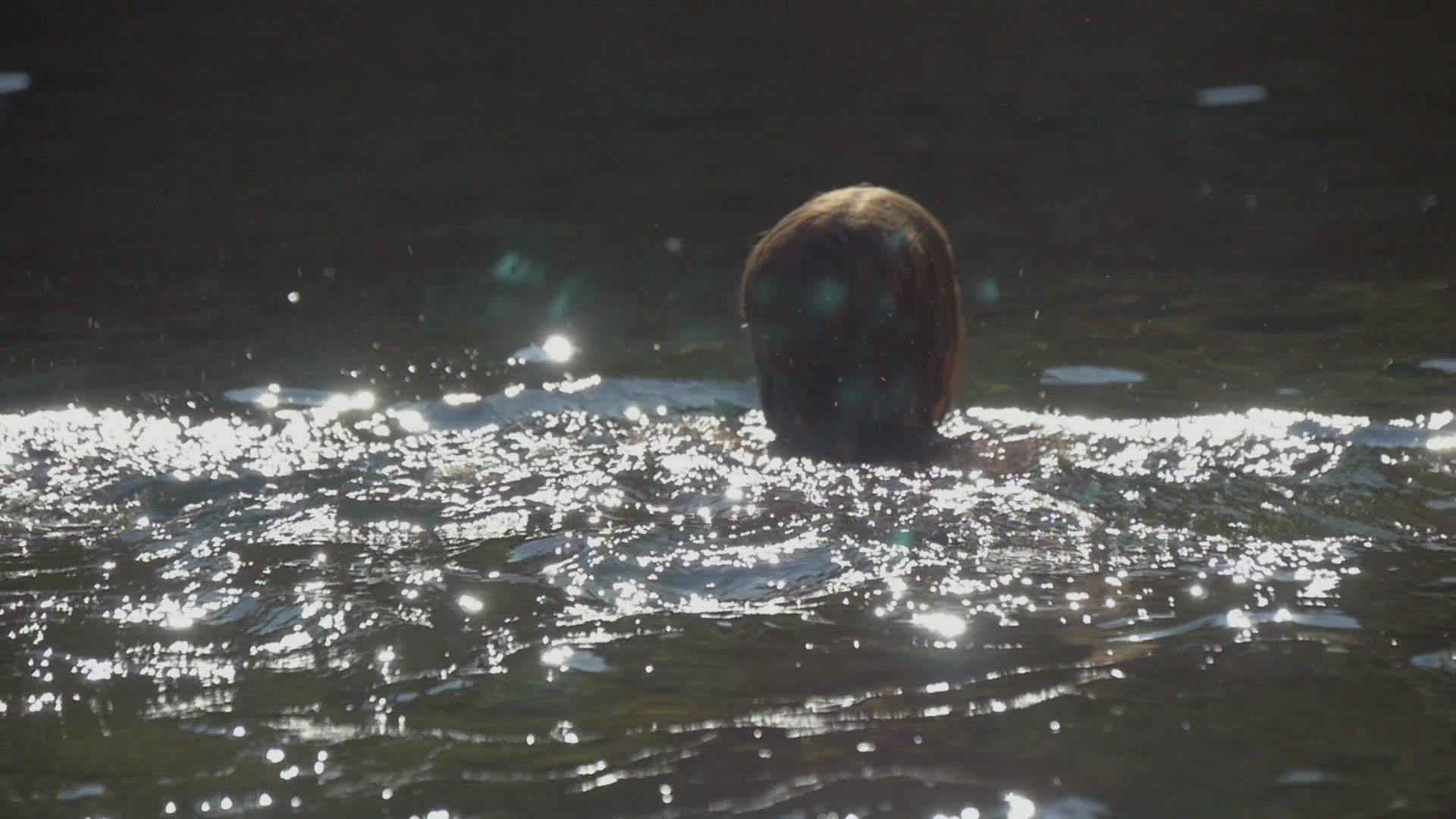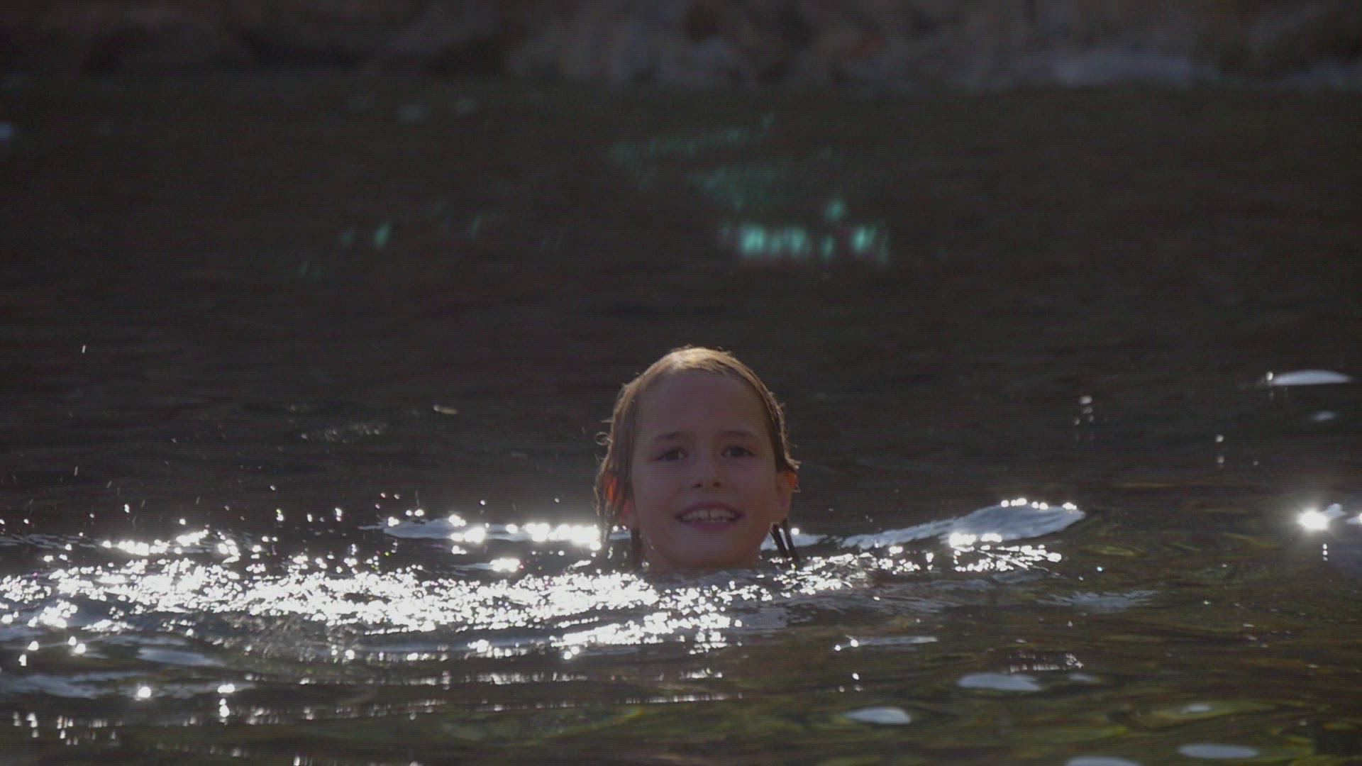 1966: young kids swimming and playing in the swimming pool on a sunny day CATALINA, CALIFORNIA