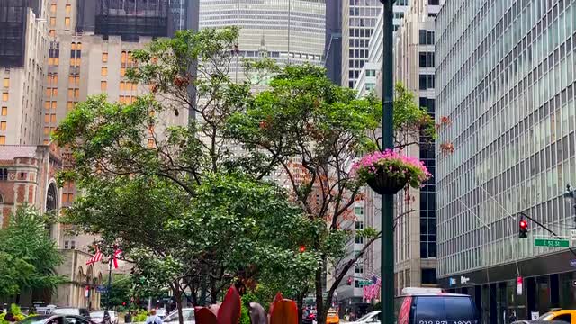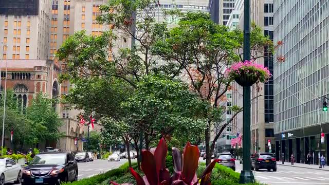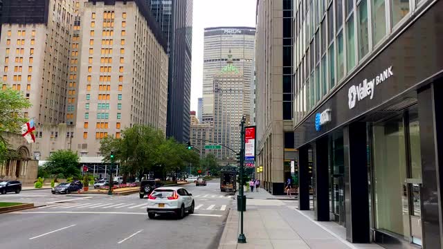 > 1966: lady walks down a sidewalk in a city on a busy street while cars pass by CATALINA, CALIFORNIA