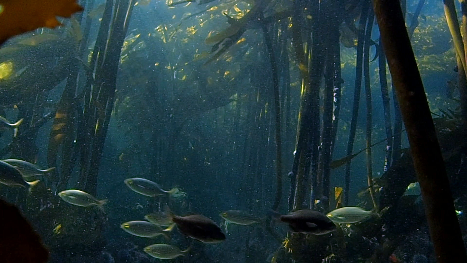 > Strepie Fish Moving Through Kelp Forest - South Africa