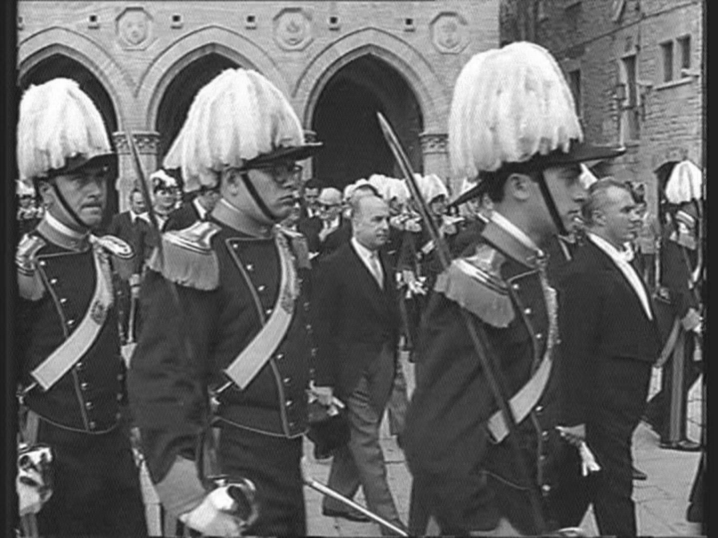 > 1964: parade on main street with marching band HARVARD, ILLINOIS