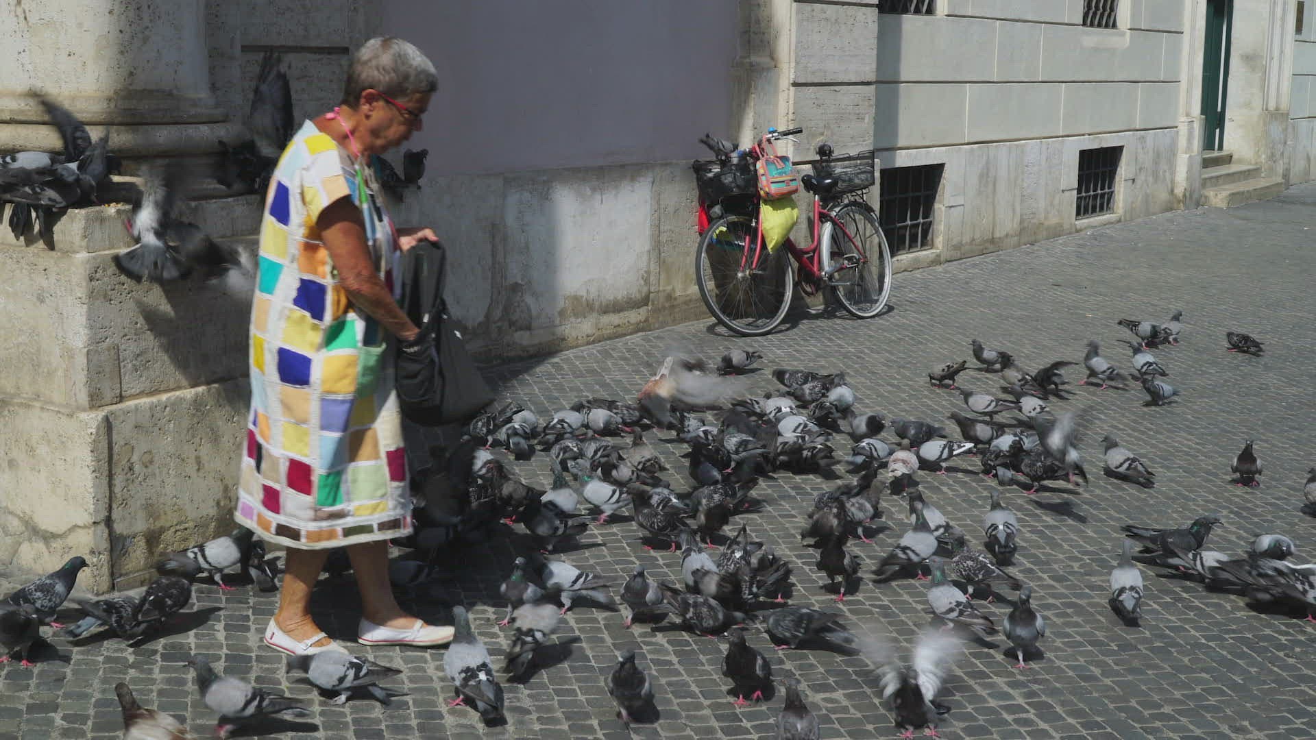 1951: a woman cautiously rides her bicycle across an intersection as a car speeds by. FLORIDA
