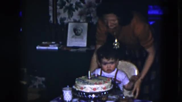 > 1951: mom puts child in high chair to celebrate birthday. CLEVELAND, OHIO
