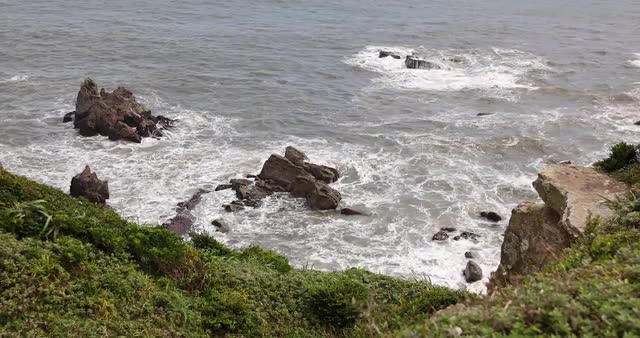 Waves crashing into sea rocks by the beach in Choshi, Chiba Prefecture, Japan